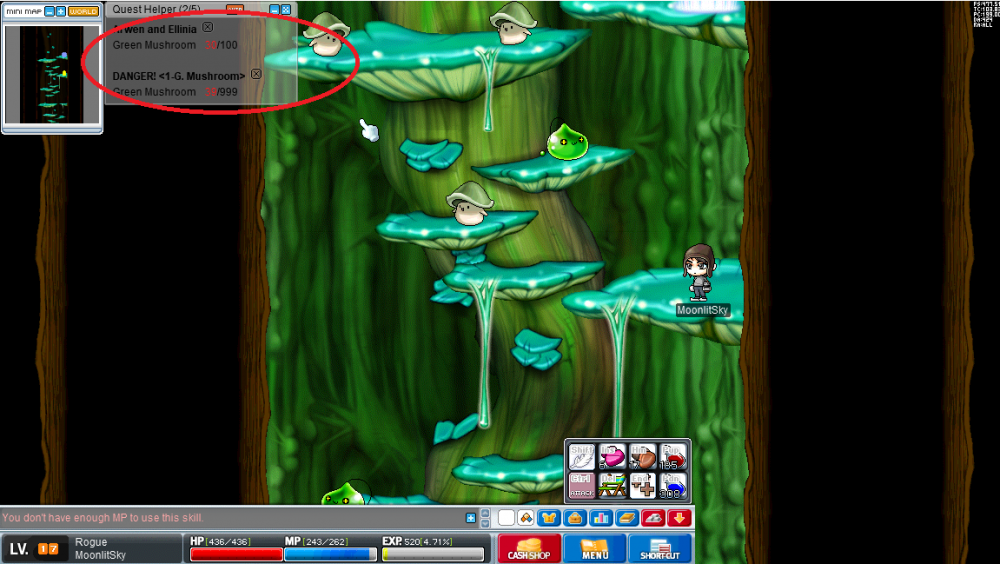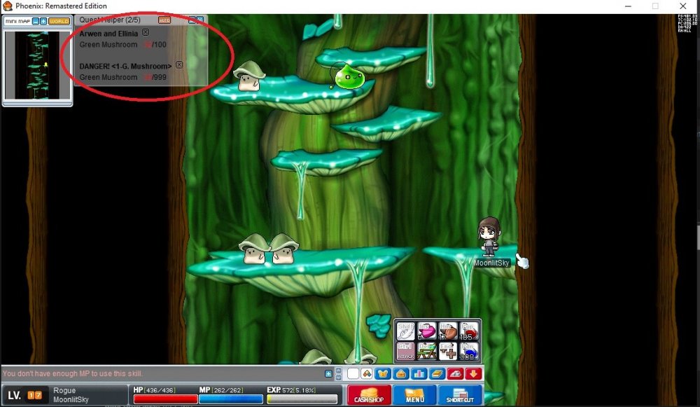 2. I'm one of the casuals who loves questing on my pace and I recently logged on phoenix after a couple months to do some chill questing and I noticed one of the quests is not tracking my progress anymore. The quest Arwen and Ellinia warrants me to hunt 100 green mushrooms. The quest DANGER! <1-G. Mushroom> warrants me to hunt 999 green mushrooms. the arwen quest counts my kills but the danger one stopped at 39. this happened to one of my quests before as well but it worked when I forfeited the quest and started again. but everytime I took my time and the quest auto-untracked, it stopped counting again. it would just be hard to keep forfeiting and starting a quest that counts to 999 if I can't do it in one go. I screenshotted the said occurance for reference. Thank you in advance for helping. 2nd picture isn't clear when I uploaded so here it is again It says 32/100 and the danger remains at 39/999